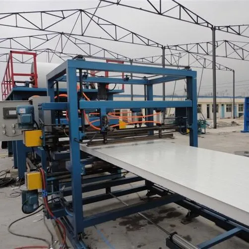 EPS/Rock wool feeding table: placing the middle part of the sandwich panel.